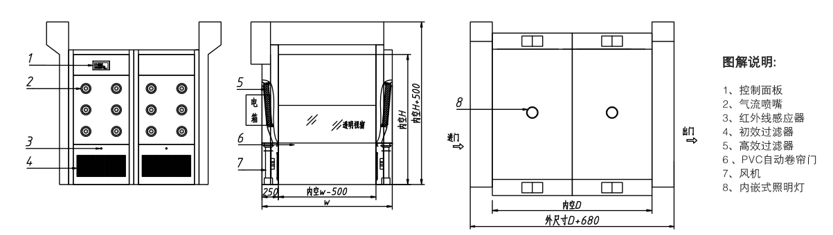 貨淋室內(nèi)部控制系統(tǒng)采用單片機控制與PLC控制 卷簾門合二為一。LED屏幕直觀的顯示整個風(fēng)淋 狀態(tài),雙面自動感應(yīng)互鎖,自動感應(yīng)吹淋,按 流程自動啟閉門。整個吹淋為全自動化。